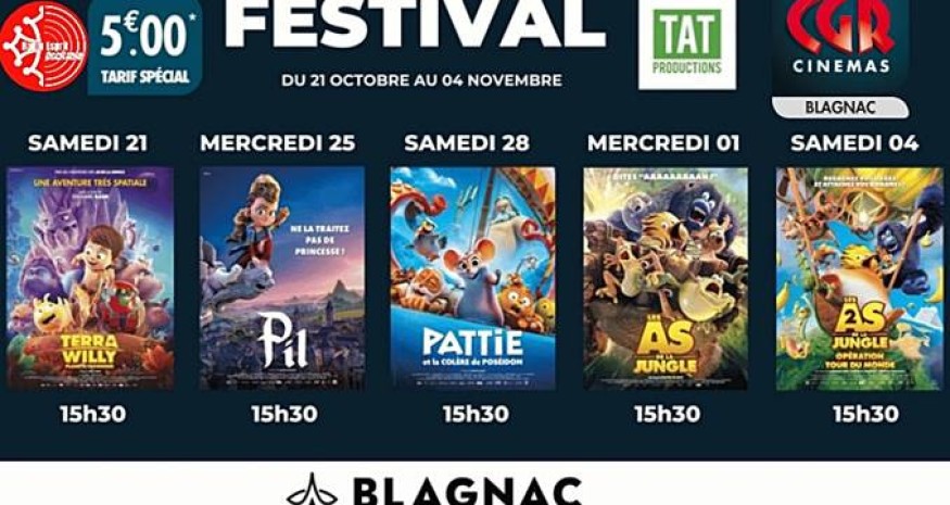 Le cinéma CGR Blagnac avec TAT productions organisent le festival TAT au cinéma du samedi 21 octobre au dimanche 04 novembre. Découvrez ou redécouvrez sur grands écrans les 5 long métrages du studio toulousain TAT Productions.