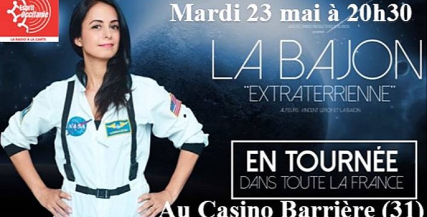Le mardi 23 mai à 20h30, le Casino Barrière accueille l’humoriste La Bajon pour son nouveau spectacle « Extraterrienne ». Retrouvez l’interview de La Bajon et son invitation au voyage interstellaire à destination de Mars. N’hésitez pas à prendre vos places à bord de la fusée de l’humour et de l’émotion.