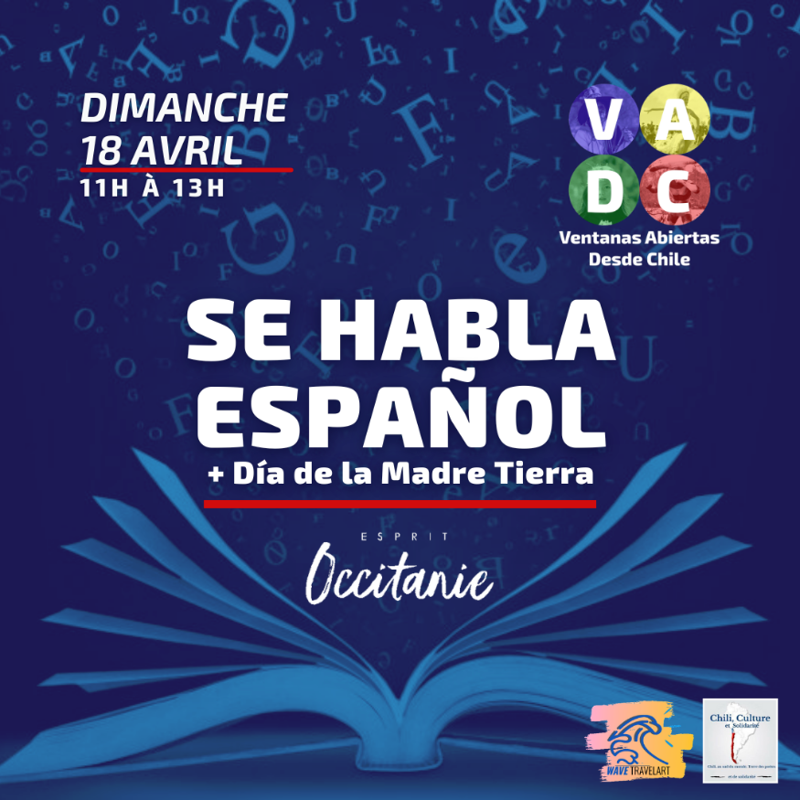Pour sa première émission auprès de Radio Esprit Occitanie, Ventanas Abiertas Desde Chile (VADC pour les intimes !) vous a concocté une emission toujours 100% en espagnol autour du thème de la Langue espagnole et de la Madre Tierra dans sa chronique "pueblos originarios". Soyez nombreux-ses à suivre VADC DIMANCHE 18 AVRIL à 11H (Heure France Métropolitaine) !