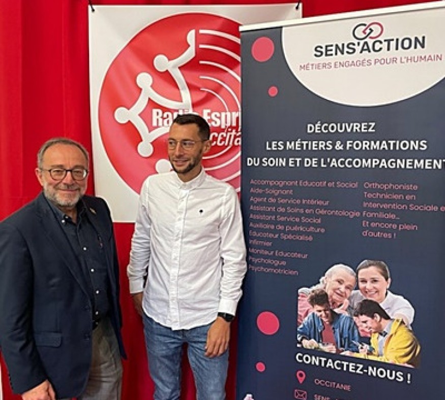 Le chargé de mission du dispositif SENS’ACTION, métiers engagé pour l’humain, Monsieur Thomas Personeni présente les nombreux actions permettant de développer l’attractivité des métiers du secteur sanitaire , social et médico-social. Financé par l’Agence Régionale de Sante d’Occitanie en lien étroit avec les fédérations et syndicats d’employeurs (NEXEM, FEHAP, FHP) SENS’ACTION se donne des objectifs ambitieux pour le secteur : faire connaître les métiers du soin et de l’accompagnement des personnes en situation de handicap et des personnes âgées, favoriser le matching entre les futurs professionnels et les établissement sociaux et médico-sociaux, améliorer la visibilité du secteur…